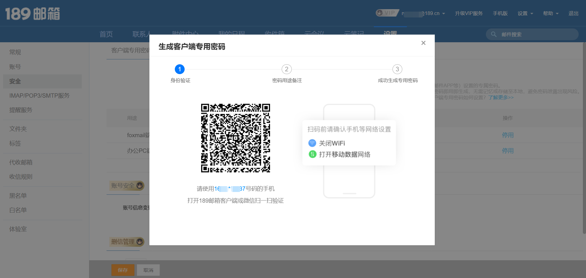 使用客户端专用密码登录第三方客户端前,请先确保您已开启IMAP/POP3/SMTP服务,否则即使登录第三方客户端也无法收发189邮箱的邮件;