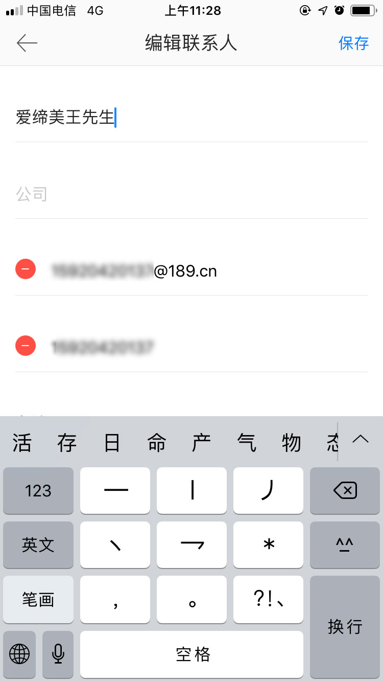 在主界面点击“联系人”进入通讯录。通讯录与网页端同步,可实现的功能包括:备份手机通讯录至云端,新建联系人,搜索。长按某一个联系人或点击编辑,可单选或批量选择联系人,进行发邮件、查看往来邮件、添加到组、编辑、删除等操作。