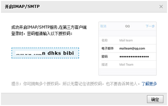 如邮箱账号已创建,则需找到帐号(帐户)设置功能,在“密码”输入框重新输入专用密码(非邮箱密码)后选择确定。