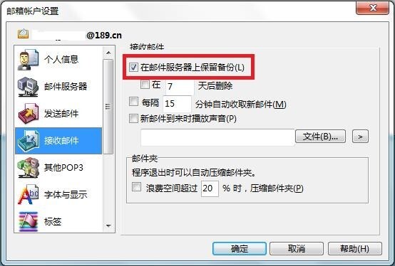 在使用Outlook、Foxmail时要设置邮件在服务器上保留,否则所有邮箱中的邮件将通过Outlook、Foxmail收取到本地,而不会在邮箱服务器中保留,如下图所示: