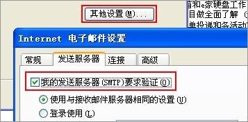 点击"其它设置",在"发送服务器"选项中选择"我的发送服务器要求验证"后点击"确定";